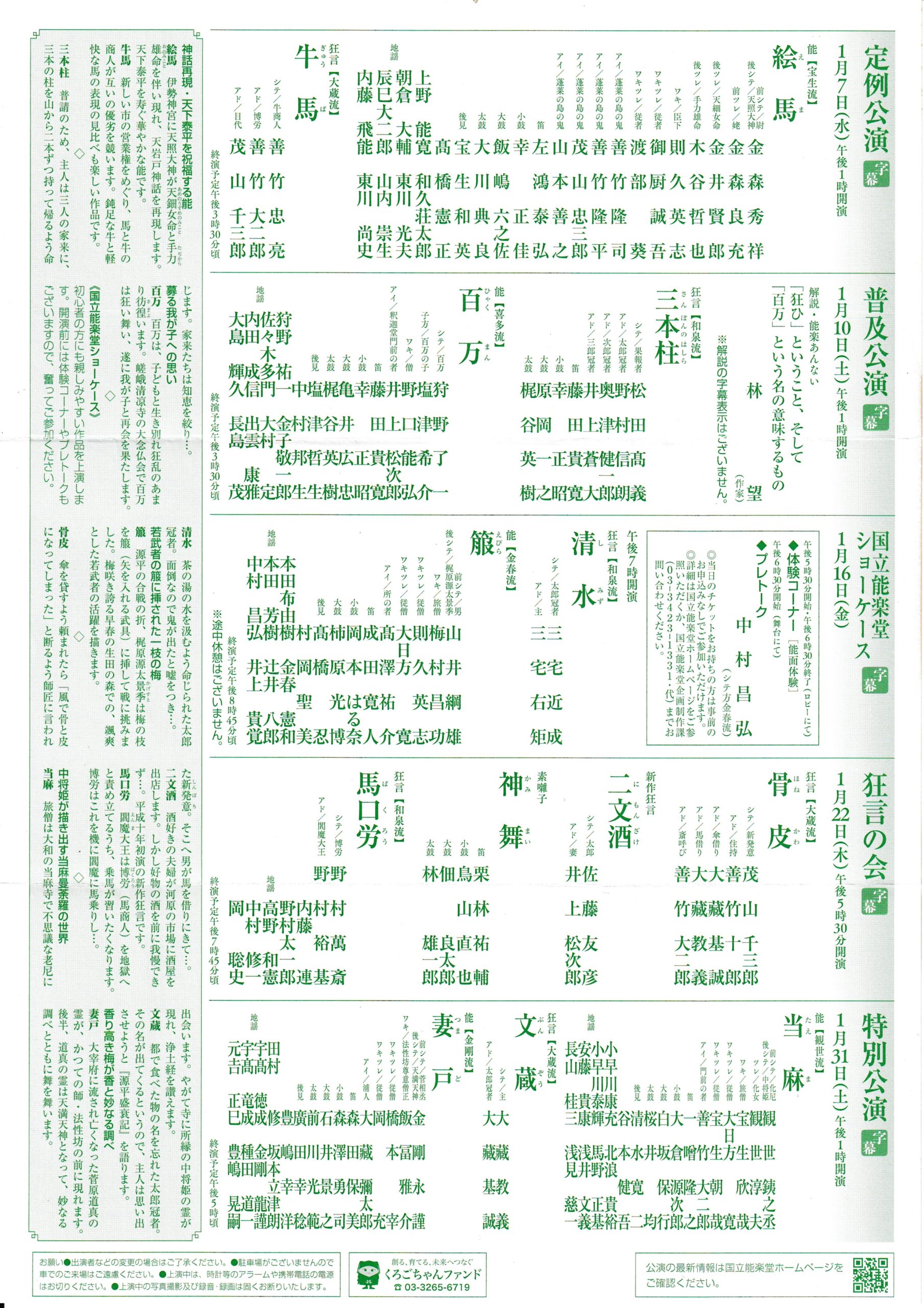 国立能楽堂 一月 普及公演